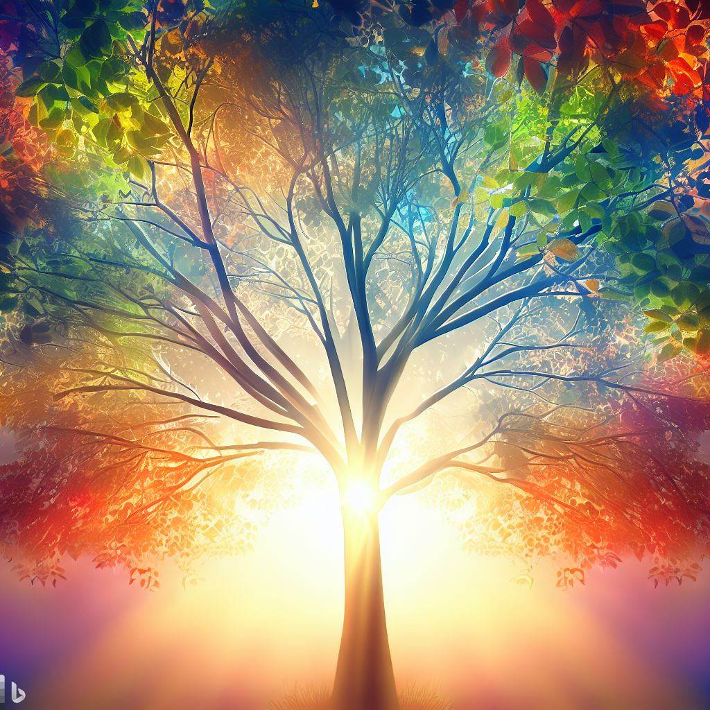 Just like the leaves on a tree change colors and fall during different seasons, our thoughts continuously cycle and evolve. Thoughts come and go in our minds, influenced by various factors, just as the tree’s leaves are affected by the energy of the Sun and Earth.